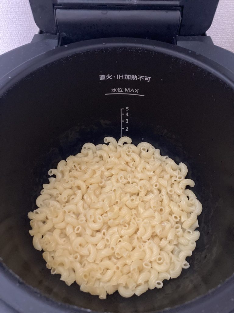 『無水で茹でる』を3分で、茹でマカロニのできあがり